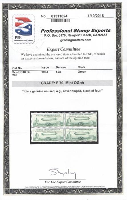 4152 C18 imageC18, Top Plate Block of 6, #21172. F-VF, NH, natural gum bends (Image) Cat 600.00