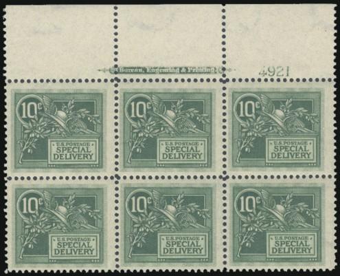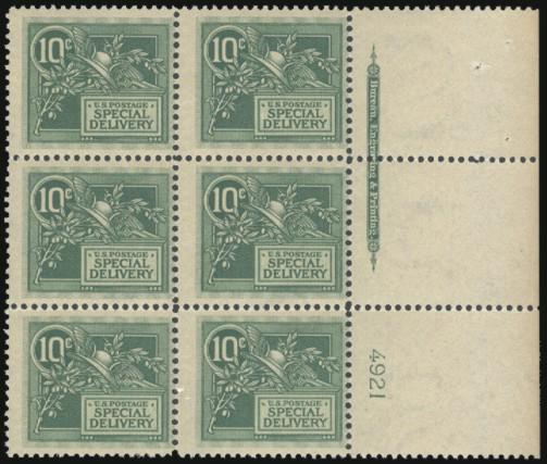 4157 E7 imageE7, Right margin Plate #4921 Block of 6. F, NH, couple pin-holes in selvedge, slight toning (Image) Cat 1,500.00