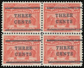 4707 129 image129, 129i, Nice fresh block with the LL stamp having the RAISED 'E' variety. VF, NH, tiny corner crease (not on the variety stamp) (Image) Cat 250.00