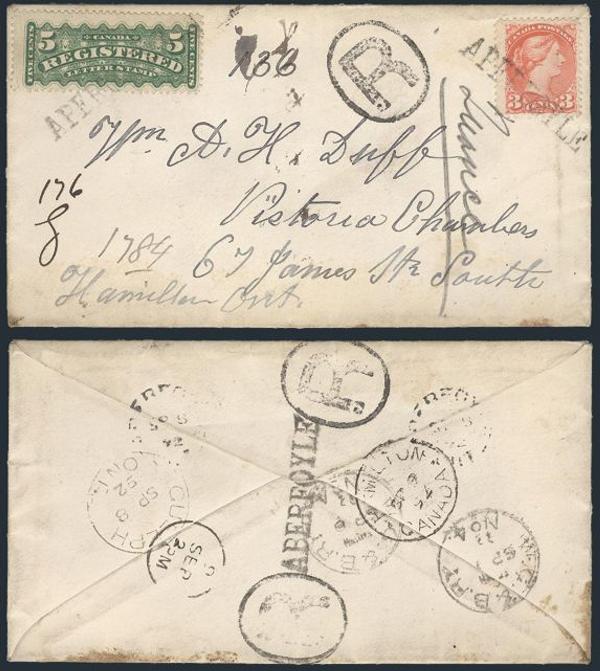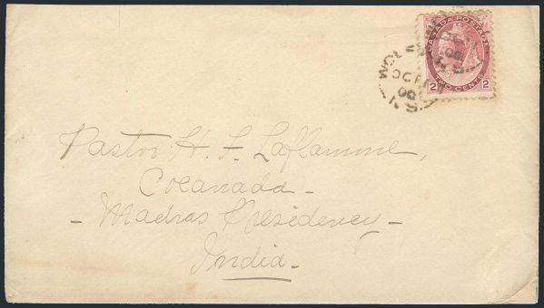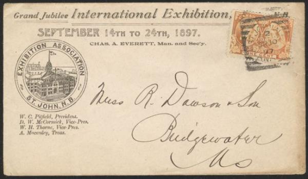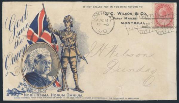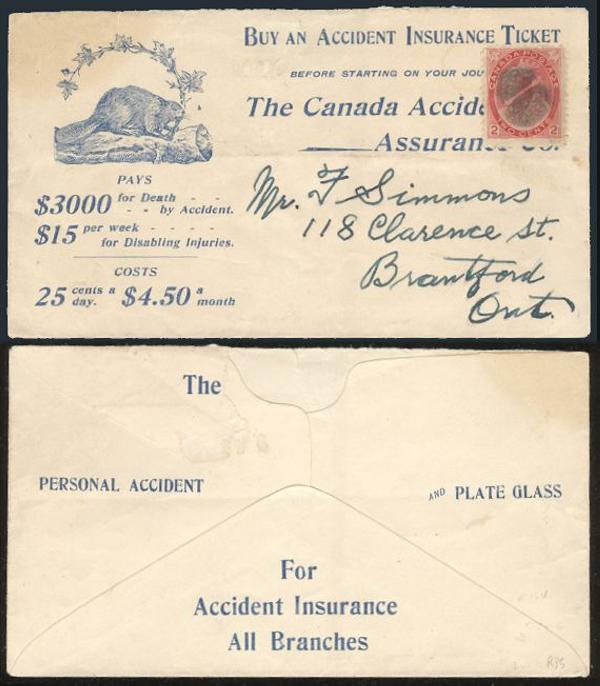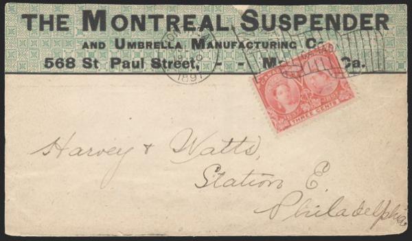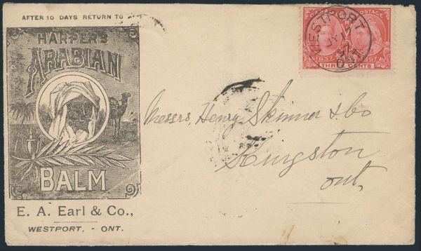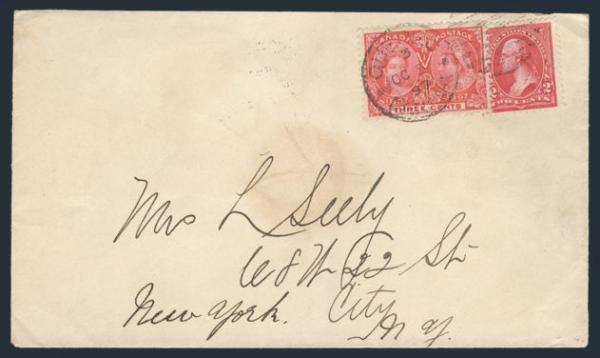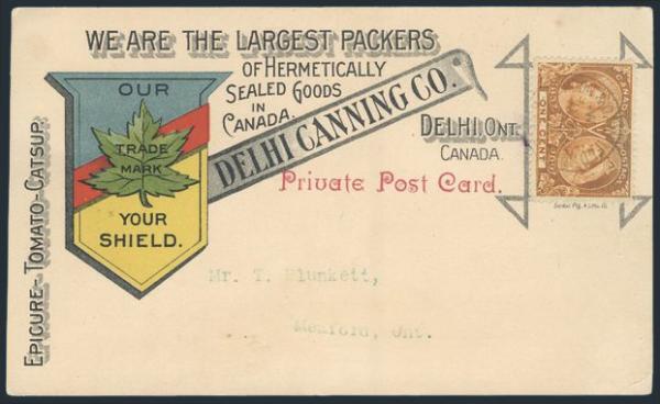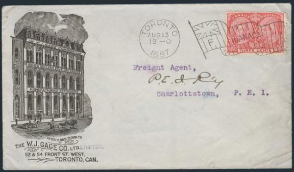 Grimsby Park Ont 17 Aug, 1897 split-ring on gorgeous illustrated advertising cover for the LAKE VIEW HOUSE in Grimsby Park. Depicts shoreline scene with pier, steamboats, other boats, etc. Addr to Philadelphia (partial b/s). A SCARCE COVER & IN