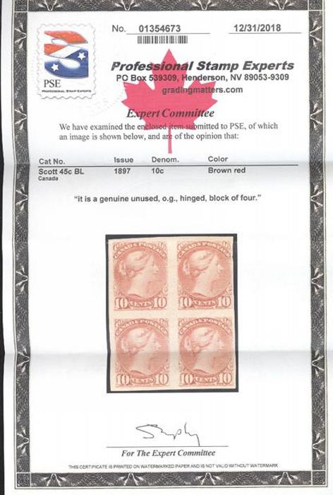 5341 45c image45c, Imperforate block of the 10¢ Brown Red, ample to large margins, excellent colour, VF, OG. Has 2018 PSE Certificate (Image) (View Certificate)