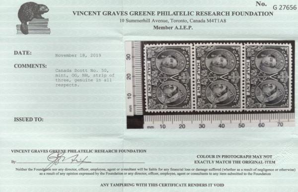 5347 50 image50, Vertical strip of 3 with beautiful centering, pristine fresh, VF, NH. Has 2019 Greene Foundation Certificate (Image) (View Certificate)