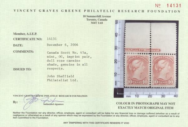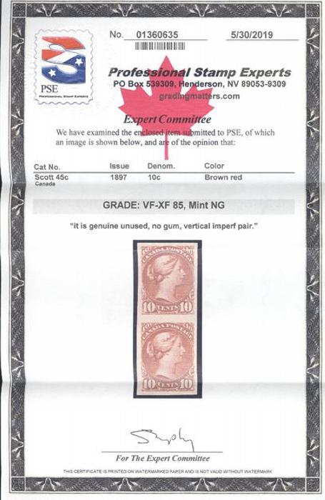 5340 45c image45c, Vertical IMPERFORATE PAIR, fresh rich colour, large margins, XF, NG. Has 2019 PSE Certificate graded VF-XF 85 (Image) (View Certificate)