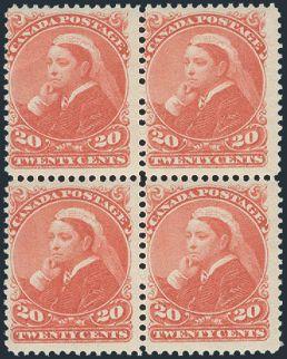 5342 46 image46, Scarce mint block of the 20¢ Widow Weed, pristine fresh colour, F-VF, NH. A RARELY SEEN NEVER HINGED BLOCK (Image) Cat 5,800.00