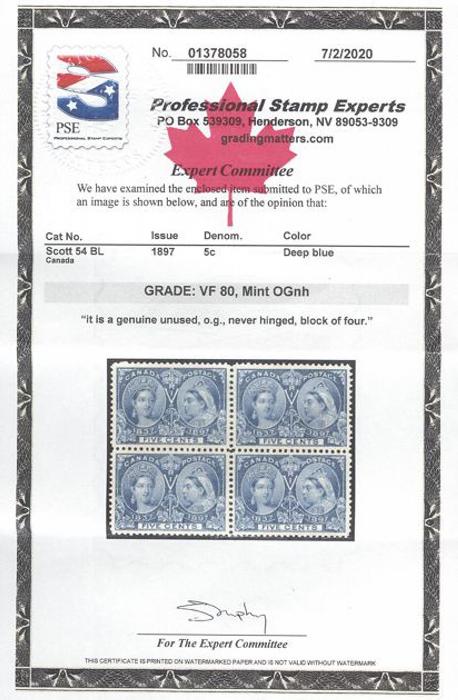 5359 54 image54, Exceptionally well centered block, pristine fresh colour, VF, NH. Has 2020 PSE Certificate graded VF 80. A CHOICE BLOCK (Image) (View Certificate)