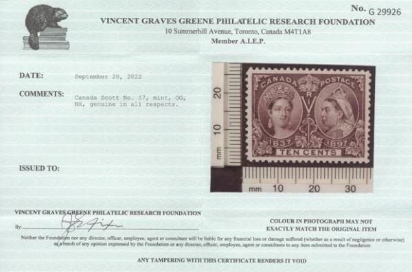 5368 57 image57, Perfect centering, bright fresh colour, XF, NH. Has 2020 Greene Foundation Certificate (Image) (View Certificate)