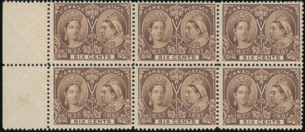 5361 55 image55, Left margin Block of 6. Fresh colour and sharp impression. F-VF, NH. Rarely seen in a large multiple like this (Image) Cat 3,600.00