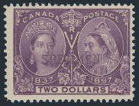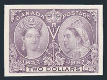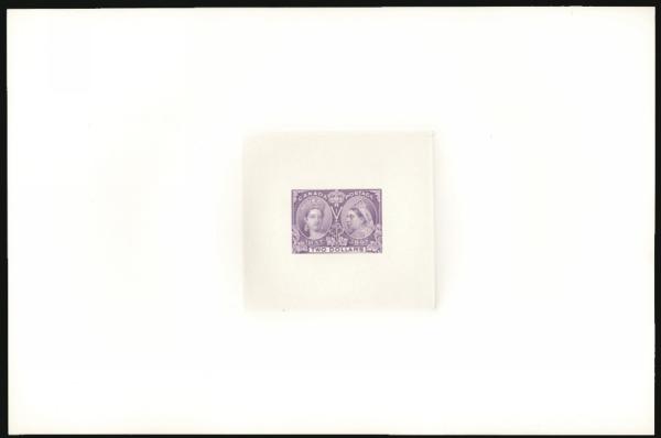 5396 62 image62, Large DIE PROOF of the $2 Jubilee in the issued colour on India Paper (65x62mm) die sunk on full size card (224 x 150mm). Remarkably fresh and choice. XF (Image) Estimate 2,500.00+ $Cdn