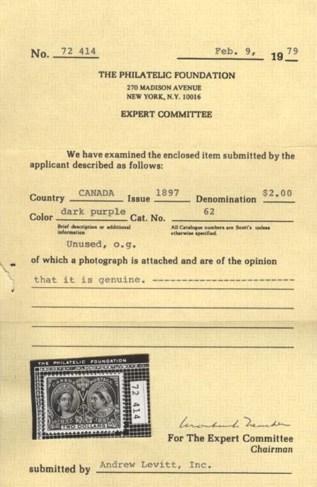 5395 62 image62, Two Dollar Jubilee, beautifully centered, lovely rich colour, exceptionally fresh, XF, LH. Has 1979 Philatelic Foundation Certificate. AN OUTSTANDING STAMP (Image) (View Certificate)