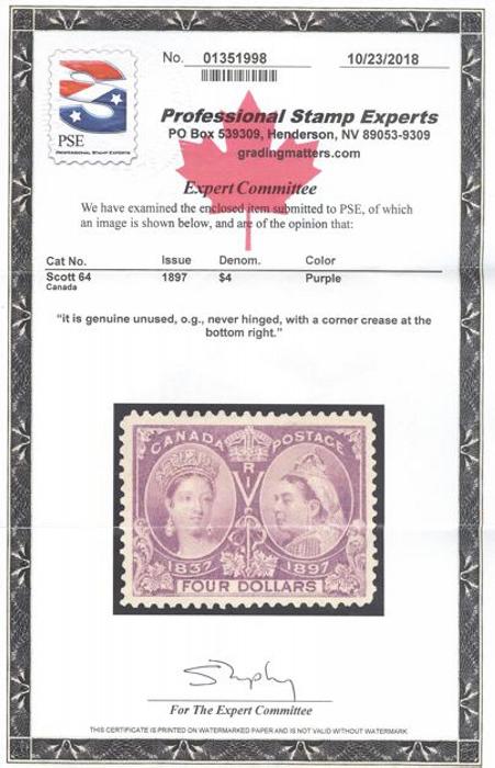 5407 64 image64, Four Dollar Jubilee beautifully centered, bright fresh colour, VF, NH, one trivial corner crease does not detract from this lovely stamp. Has 2018 PSE Certificate (Image) (View Certificate)