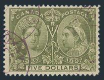 5414 65 image65, Five Dollar Jubilee, deep rich colour, neat magenta CDS cancels, F-VF (Image) Cat 1,200.00