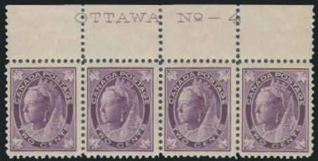 5420 68 image68, Top margin strip of 4 with full Plate 4 Imprint. Fresh, F-VF, NH (Image) Cat 560.00+