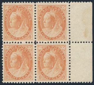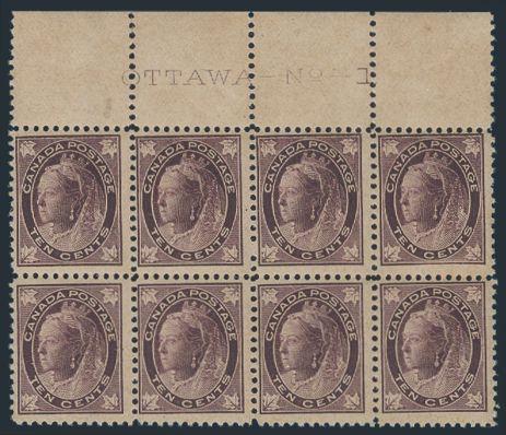 5440 73 image73, Top margin Plate No. 1 Imprint block of 8, rich colour, F-VF, NH, very light toning. AN EXCEPTIONALLY RARE PLATE BLOCK (Image) 16,800.00