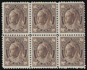 5430 71 image71, 71ii, Block of 6 with the MISPLACED ENTRY (on stamp #5). A nice positional block & a nice clear example. Fresh, F-VF, NH (Image) Cat 3,962.00
