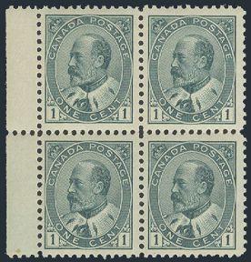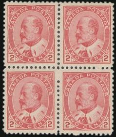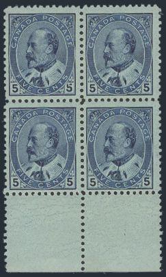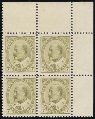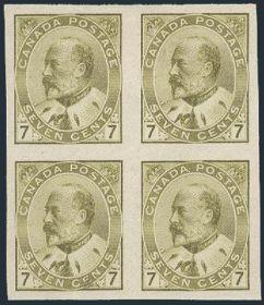 5516 92a image92a, IMPERFORATE BLOCK of the 7¢ Edward, deep rich colour, large balanced margins, XF. IMPERF blocks of this issue are rare (Image) Cat 2,000.00+
