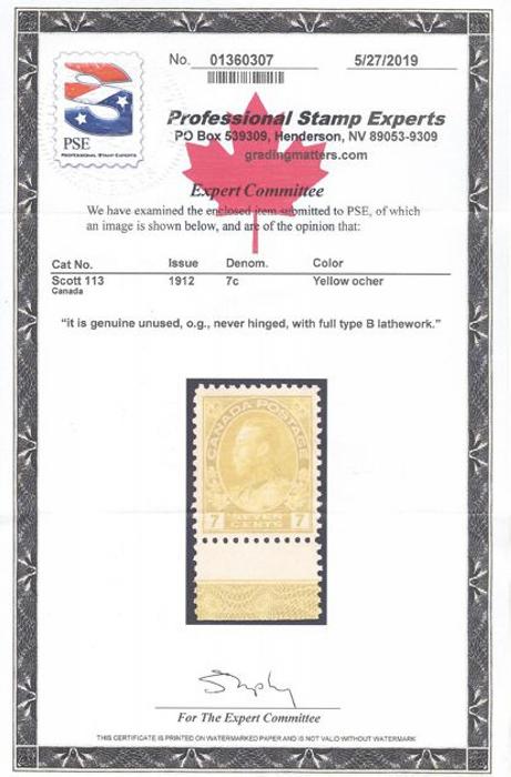 5575 113 image113, Bottom sheet margin single with full TYPE B LATHEWORK, fresh rich colour, nicely centered, VF, NH. Has 2019 PSE Certificate (Image) (View Certificate)