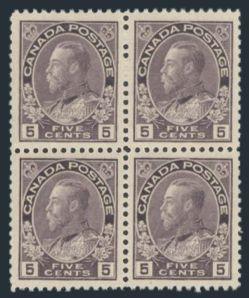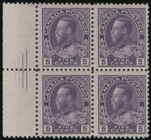 5573 112av image112av, Violet 5¢ on thin paper block showing the PYRAMID GUIDE LINES in the left margin. Fresh, F-VF, NH. VERY SCARCE & SELDOM OFFERED. Ex Phillips (Image) Cat 1,950.00