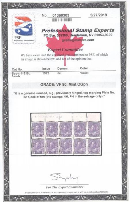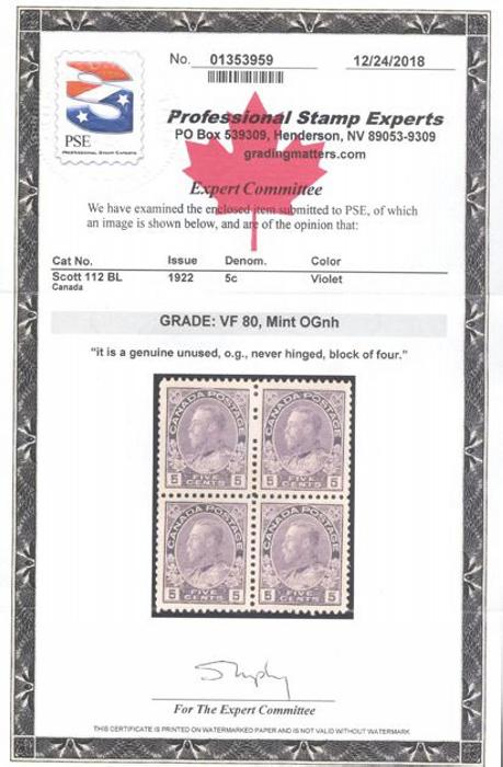 5570 112 image112, Fresh block with outstanding centering, rich colour, VF, NH. Has 2018 PSE Certificate graded VF 80 (Image) (View Certificate)