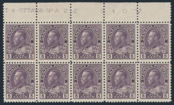 5571 112 image112, Lovely top margin Plate No.A22 Imprint block of 10, pristine fresh, VF, stamps are all NH (LH in selvedge only), natural gum bend. Has 2019 PSE Certificate. A PRETTY SHOWPIECE (Image) (View Certificate)