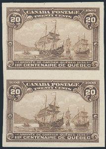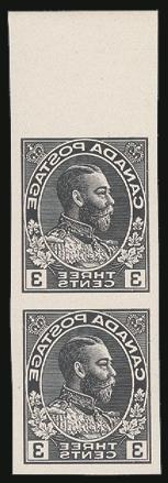 5563 108 image108, Top margin Imperf Pair of the Eckerlin REVERSE ESSAY of the 3¢ Admiral, in black. VF (Image) Estimate 100.00+ $Cdn