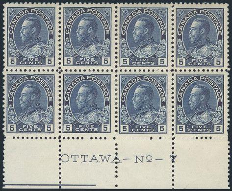 5569 111 image111, Beautiful bottom margin Plate No 7 Block of 8, nicely centered, deep rich colour, VF, 6 stamps are NH. A VERY SCARCE PLATE BLOCK (Image) Cat 9,000.00