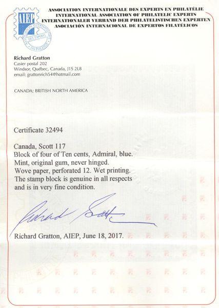 5591 117 image117, Block, fresh rich colour, VF, NH. Has 2017 Gratton Certificate (Image) (View Certificate)