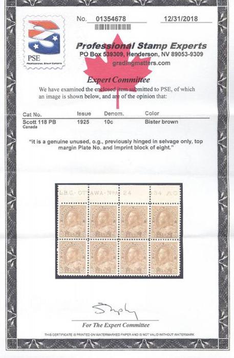 5592 118 image118, Top sheet margin Plate 24 Block of 8, beautifully centered, bright fresh colour, VF, stamps are NH. Has 2018 PSE Certificate (Image) (View Certificate)