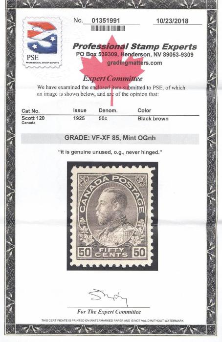 5598 120 image120, Beautifully centered, pristine fresh, XF, NH. Has 2018 PSE Certificate graded VF-XF 85 (Image) (View Certificate)