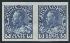 5583 115a image115a, Scarce IMPERFORATE PAIR of the 8¢ Admiral, fresh rich colour, large margins, VF, neat hinge remnants. Only 50 pairs exist (Image) Cat 3,000.00