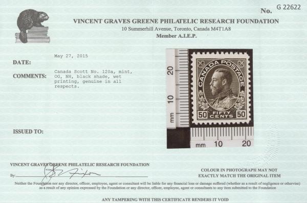 5600 120a image120a, Lovely 50¢ Black, wet printing, VF, NH. Has 2015 Greene Foundation Certificate. A VERY SCARCE STAMP (Image) (View Certificate)