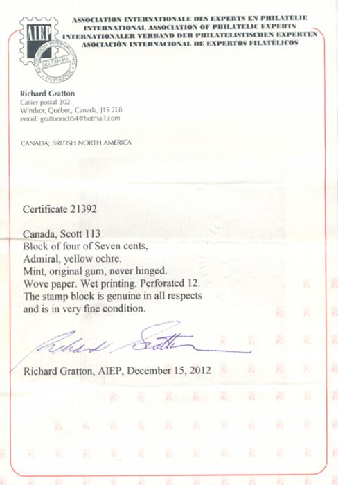 5576 113 image113, Brilliant fresh block with crisp colour, lovely centering. VF, NH. Has 2012 Gratton Certificate (Image) (View Certificate)