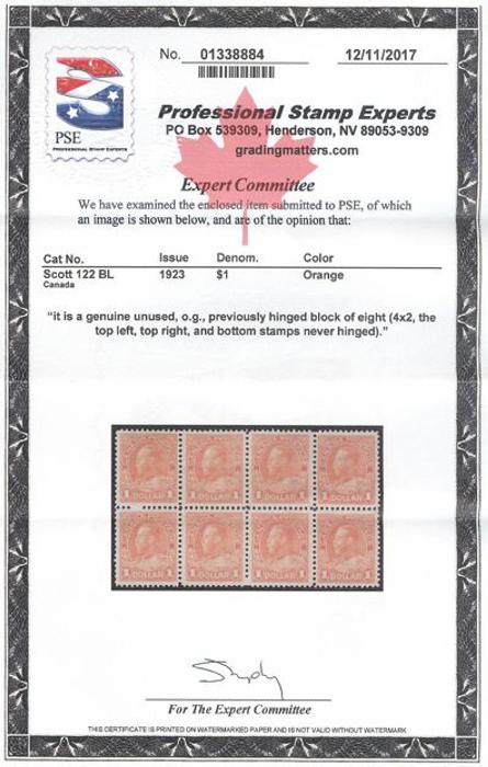 5604 122 image122, Lovely block of 8 of the $1 Admiral, bright fresh colour, VF, 6 stamps are NH. Has 2017 PSE Certificate (Image) (View Certificate)
