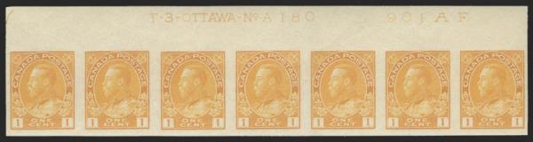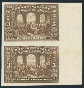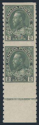 5601 120b image120b, Vertical sheet margin Imperforate Pair, large margins, crisp colour, VF, OG, creased. Only 50 pairs exist. Cat $4,000 (Image) Estimate 1,200.00+ $Cdn