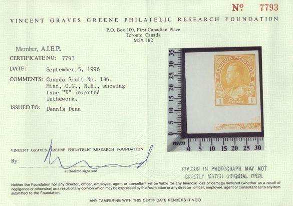 5622 136 image136, LL corner margin single with TYPE D INVERTED LATHEWORK, fresh, XF, NH. Has 1996 Greene Foundation Certificate. AN OUTSTANDING STAMP (Image) (View Certificate)