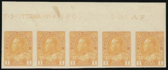 5621 136 image136, Top margin strip of 5 with A180 imprint, small stain in top margin but stamps are VF, NH (Image) Cat 500.00