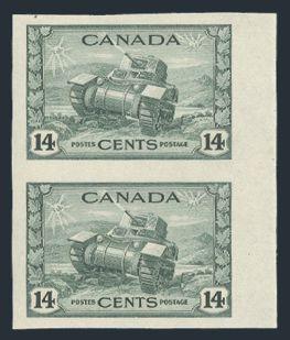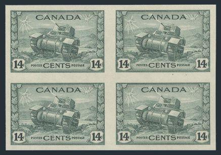 5828 259a image259a, Imperforate block of the 14¢ Tank, large margins, pristine fresh colour, XF, NH. Only 75 pairs exist and blocks are extremely rare (Image) Cat 1,800.00+