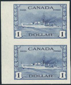 5836 262 image262, $1 Destroyer sheet margin IMPERFORATE PAIR, large margins, pristine fresh, XF, NH. Only 75 pairs exist (Image) Cat 900.00+