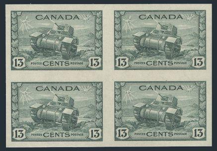 5826 258a image258a, Imperforate block of the 13¢ Tank, large margins, pristine fresh colour, XF, NH. Only 50 pairs exist and blocks are extremely rare (Image) Cat 1,800.00+