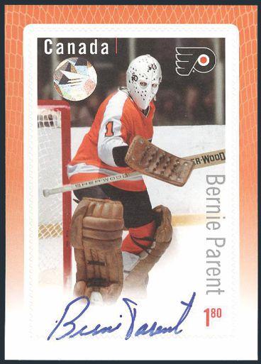 6004 2877i image2877i, Autographed BERNIE PARENT Hockey Stamp Card. VF, NH (Image) Estimate 250.00+ $Cdn