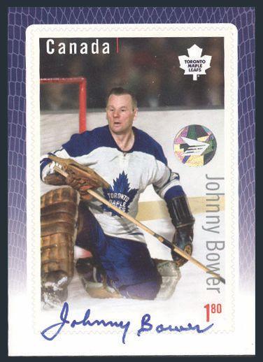6005 2875i image2875i, Autographed JOHNNY BOWER Hockey Stamp Card. VF, NH (Image) Estimate 250.00+ $Cdn