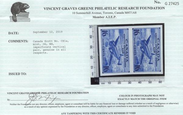 6021 CE1a imageCE1a, Imperforate Pair, large margins all around, fresh immaculate colour, XF, NH. Ex Lanza, Ryterband. Has 2019 Greene Foundation Certificate. Only 75 pairs exist. A TOP QUALITY ITEM (Image) (View Certificate)