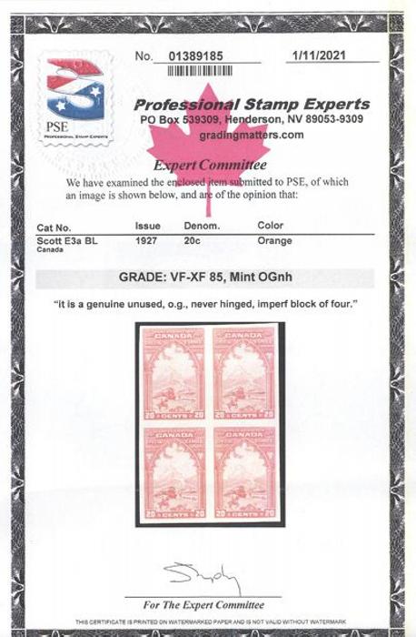 6036 E3a imageE3a, Imperforate block, excellent margins, pristine fresh colour, VF/XF, NH. Has 2021 PSE Certificate graded VF-XF 85. VERY FEW BLOCKS EXIST (Image) (View Certificate)