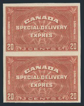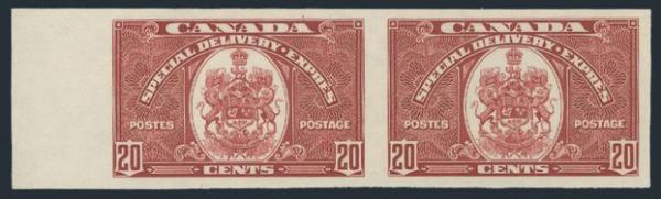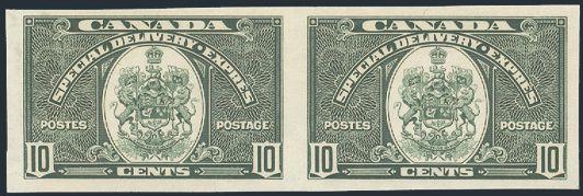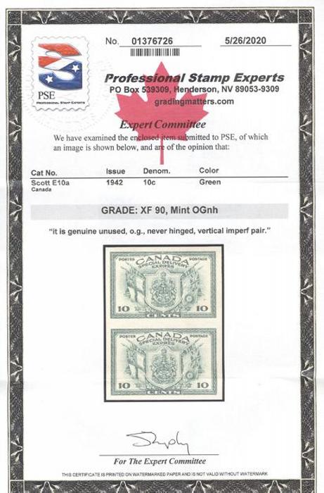6048 E10a imageE10a, Gorgeous Imperforate Pair, large margins, pristine fresh colour, XF, NH. Only 75 pairs exist. Has 2019 PSE Certificate graded XF 90 (Image) (View Certificate)