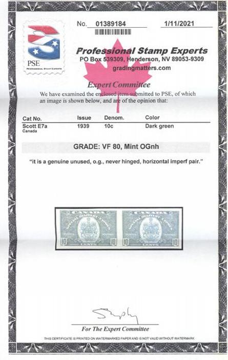 6044 E7a imageE7a, Imperforate Pair, excellent margins, bright fresh colour, VF, NH. Has 2021 PSE Certificate. Only 75 pairs exist (Image) (View Certificate)