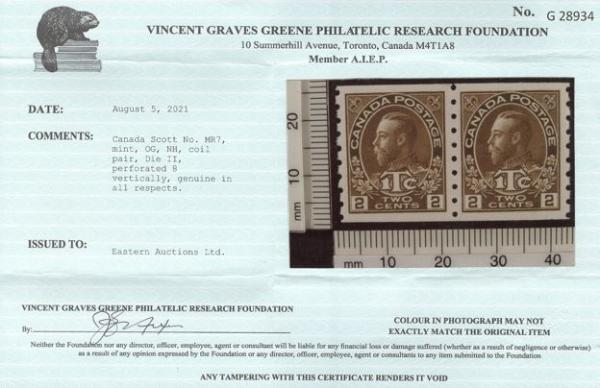 6091 MR7 imageMR7, Coil pair, exceptional centering, pristine fresh colour, XF, NH. Has 2021 Greene Foundation Certificate. RARELY SEEN IN THIS CHOICE CONDITION (Image) (View Certificate)