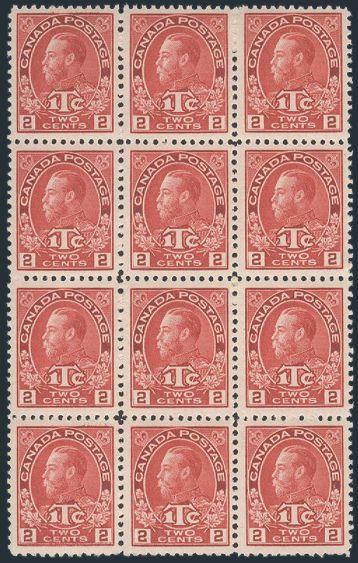 6082 MR3b imageMR3b, Nice mint block of 12 of the Rose Red shade Die I. Nice fresh bright colour. VF, 7 stamps are NH, 5 stamps LH (Image) Cat 1,950.00