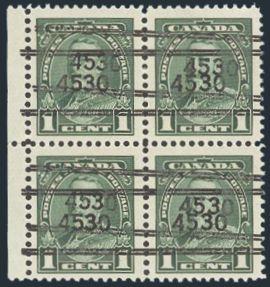 6199 Toronto 13-217D imageToronto 13-217D, Margin block with an eye-catching DOUBLE PRECANCEL. VF, bottom stamps NH (Image) Estimate 50.00+ $Cdn