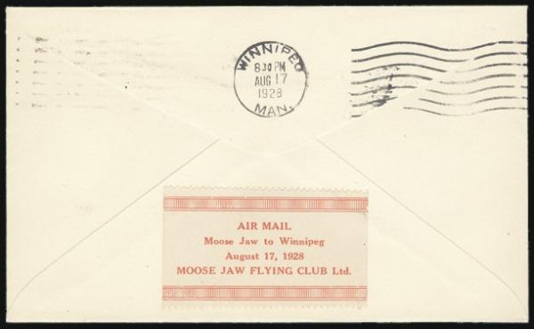 Aero Club of Canada tied by 26 Aug 1918 flight cachet on Reg'd flight cover from Toronto to Ottawa. Has all the proper markings incl scroll cachet, registry marking, violet boxed "AERIAL MAIL/AUG 26, 1918/TORONTO CANADA" and rec b/s. THIS IS ONE OF