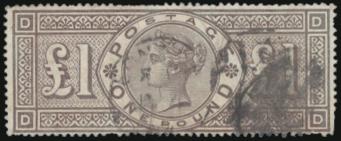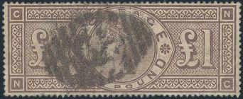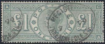 1017 110 image110, QV One Pound, nicely centered. VF, light corner crease, small hidden repair. A scarce stamp (Image) Cat 3,500.00