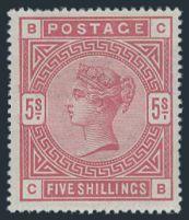 1010 108 image108, QV Five Shilling High Value. Fresh crisp colour, VF, OG (Image) Cat 1,150.00